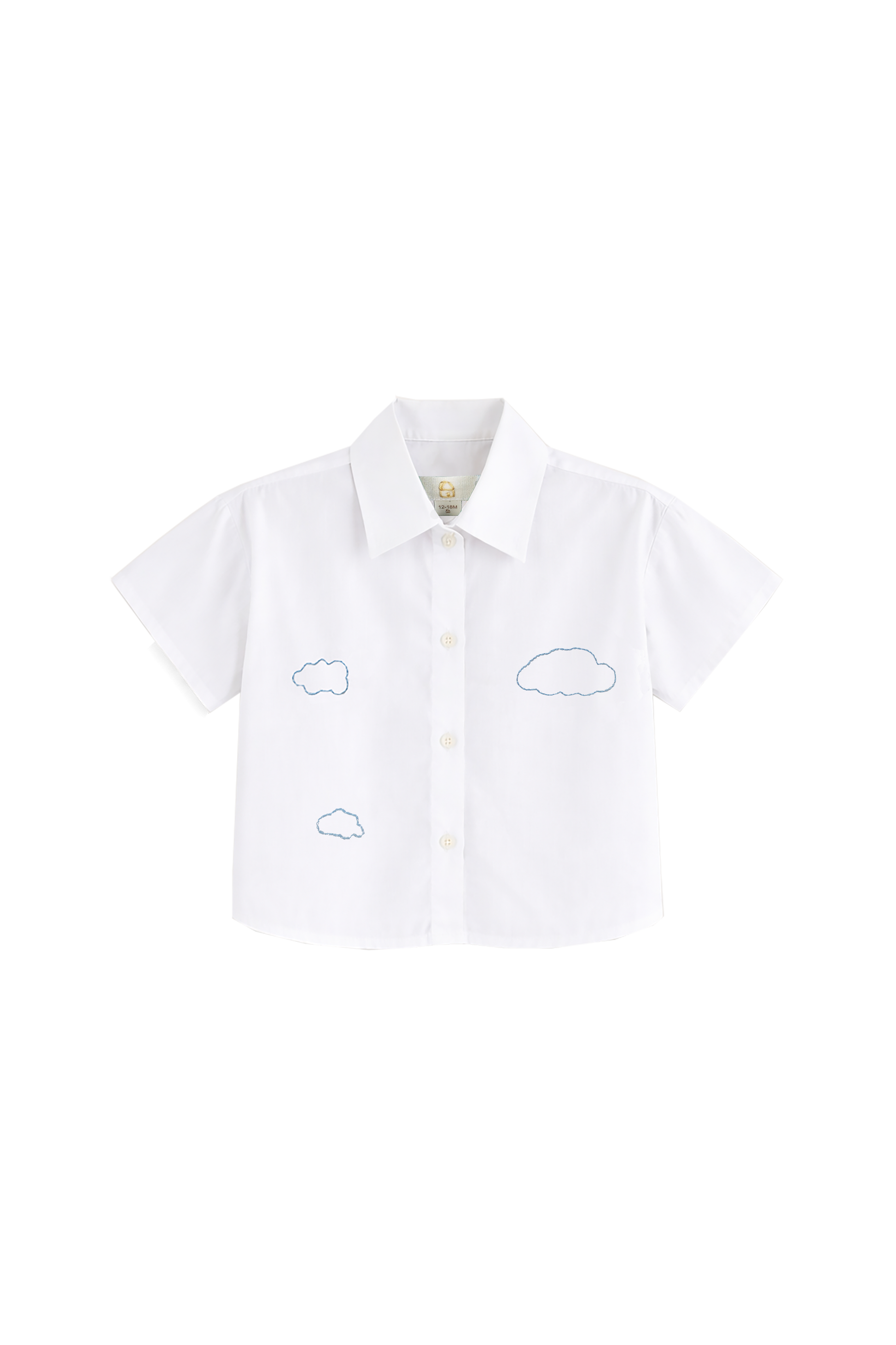 White cotton shirt with hand-embroidered small drifting clouds. A quiet nod to childhood moments spent lying in the grass, looking up at the sky and finding shapes in the air. Light and breathable, it is made for warm days, salty hair, and little ones who carry summer with them wherever they go.